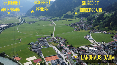 Top-Skigebiete wie Horbergbahn, Ahorn, Penken, Zillertal Arena, Hochzillertal, Hochfügen, Spieljoch und der beeindruckende Hintertuxer Gletscher sind bequem erreichbar. Genießen Sie: